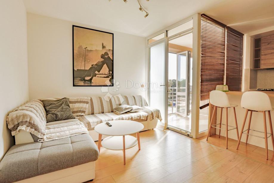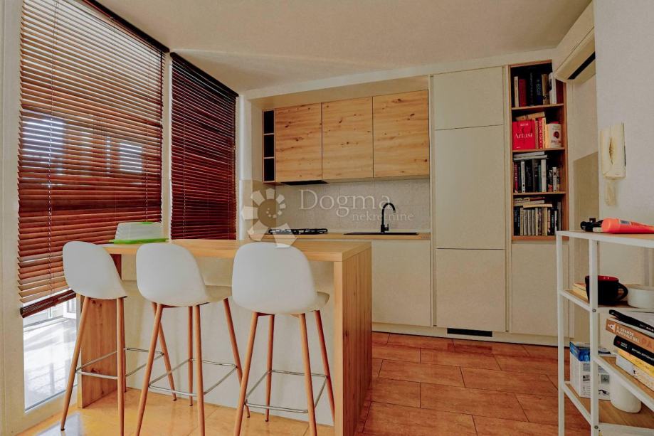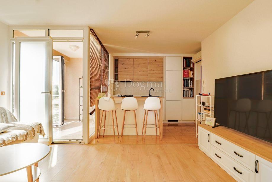 Stan se sastoji od dvije prostrane i svijetle spavaće sobe koje pružaju ugodnu atmosferu za opuštanje. Centralni dio stana čine kuhinja i dnevni boravak u otvorenom konceptu, koji omogućava jednostavnost u svakodnevnom korištenju te pruža osjećaj prostranosti i povezanosti. Iz dnevnog boravka izlazi se na terasu, idealnu za uživanje u jutarnjoj kavi ili opuštanje tijekom toplih ljetnih večeri.