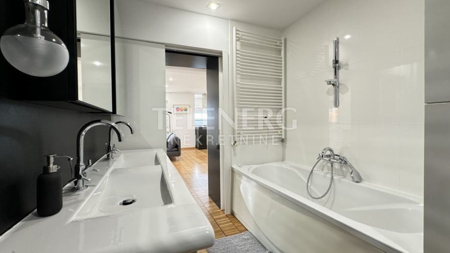 Sastoji se od spavaće sobe,velikog dnevnog boravka (u jednom djelu sa radnim stolom) te spojenom kuhinjom i blagavaonom,kupaona sa kadom i duplim umivaonikom te balkonom na koji se izlazi iz kuhinje i dnevne sobe.