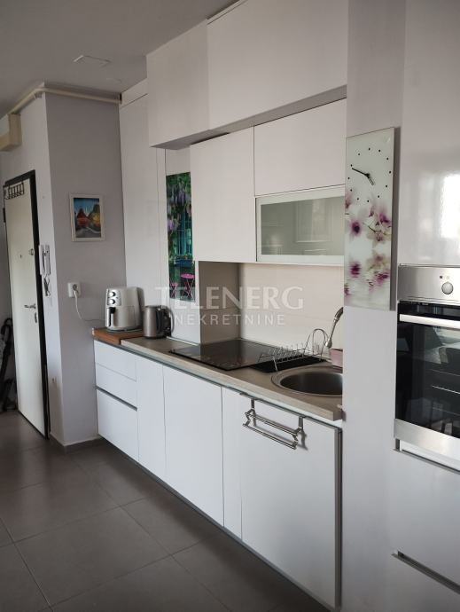 Stan se sastoji od dnevnog boravka, kuhinje s blagovaonicom, spavaće sobe, kupaonice te velike prostrane terase s otvorenim pogledom. Stan se iznajmljuje prvi put.
