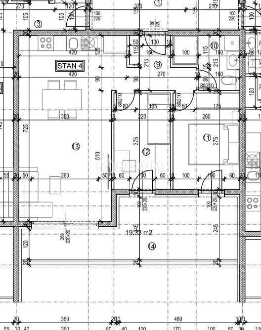 Stan je dvosoban i sastoji se od hodnika, dvije spavaće sobe, kupaonice, dnevnog boravka s kuhinjom i blagovaonicom te terase, koja predstavlja idealno mjesto za opuštanje i boravak na otvorenom.