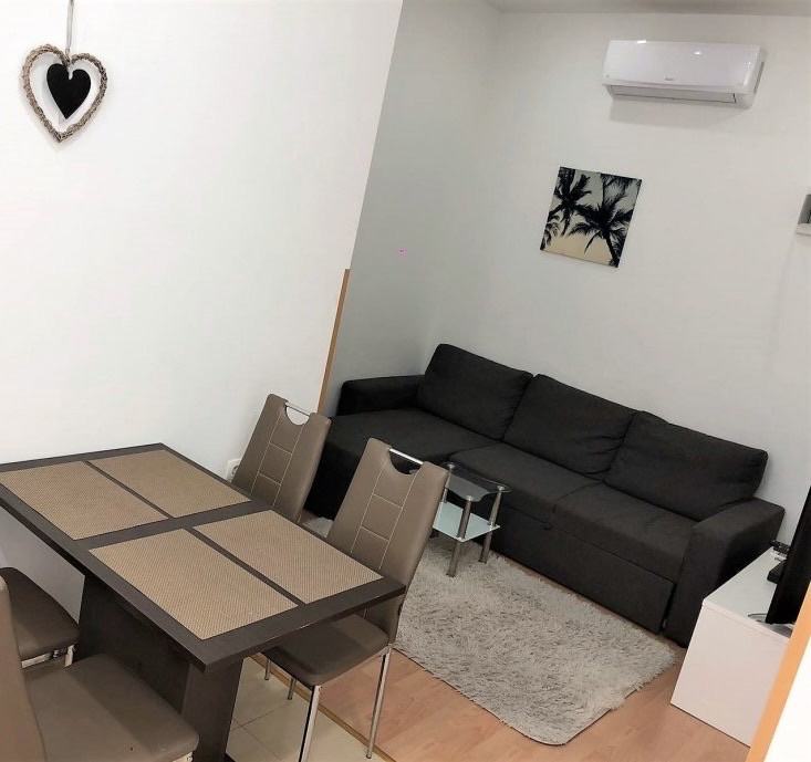 Dugoročno se iznajmljuje dvosoban stan smješten na vrlo lijepoj lokaciji na Trsteniku. Nalazi se u prizemlju kuće te ima 55m2. Sastoji se od dvije spavaće sobe, kupaone, kuhinje sa dnevnim boravkom. Ima osigurano parking mjesto. U blizini se nalaze svi potrebni sadržaji, a do plaže i mora je svega par minuta pješice. Cijena mjesečnog najma je 750€.