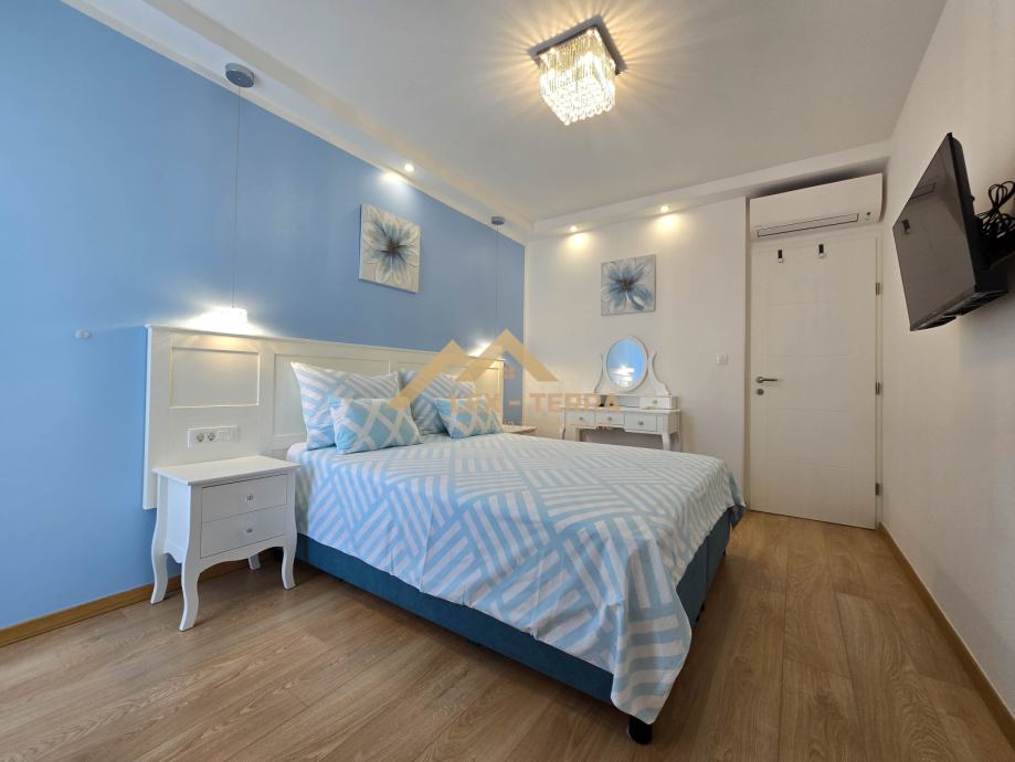 It is equipped with all necessary appliances and furniture, including TV, air conditioner, washing machine and dishwasher. The apartment is air-conditioned, has internet and floor heating in the entire space, which provides additional comfort.
