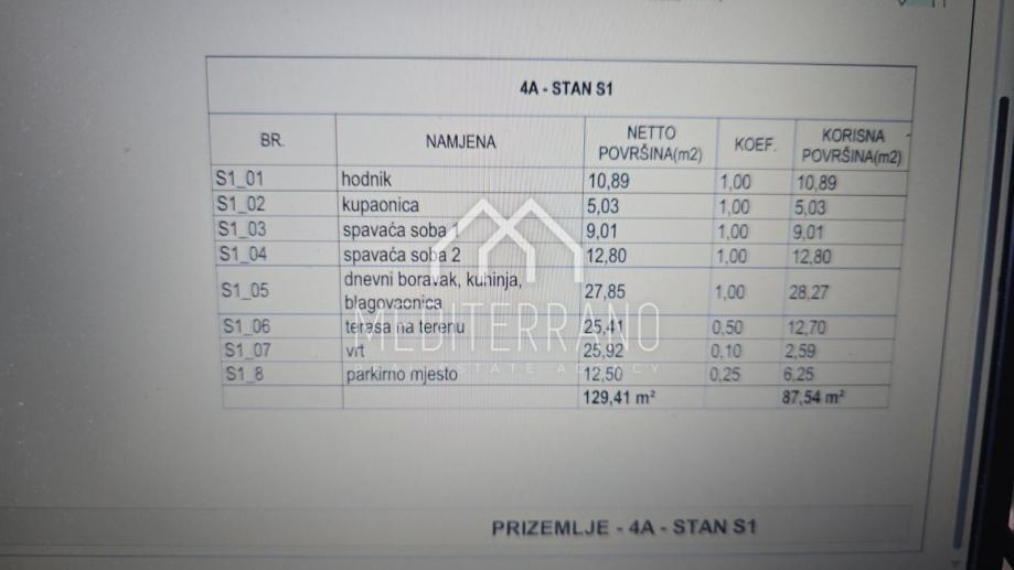 Iz dnevnog boravka se izlazi na prostranu natkrivenu terasu površine 25,41 m², koja vodi prema vlastitom vrtu površine 25,92 m², idealnom za opuštanje ili druženje na otvorenom.