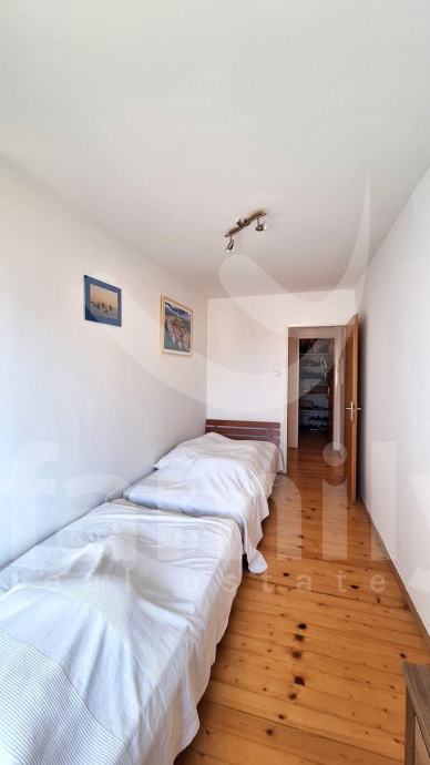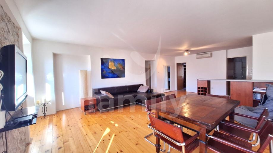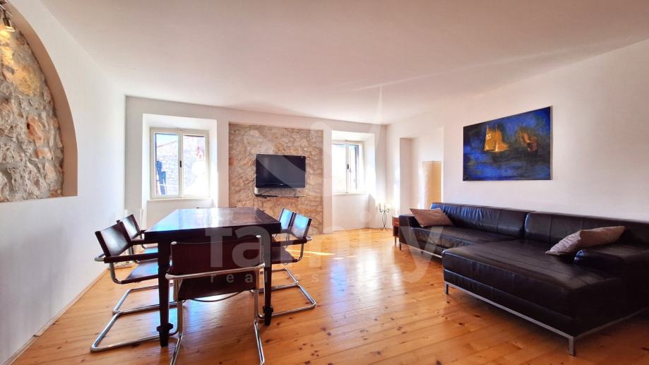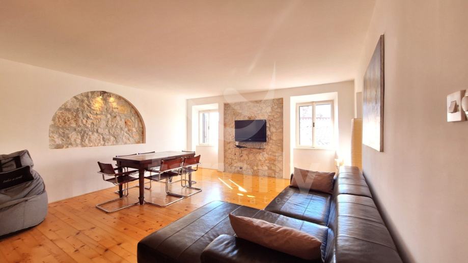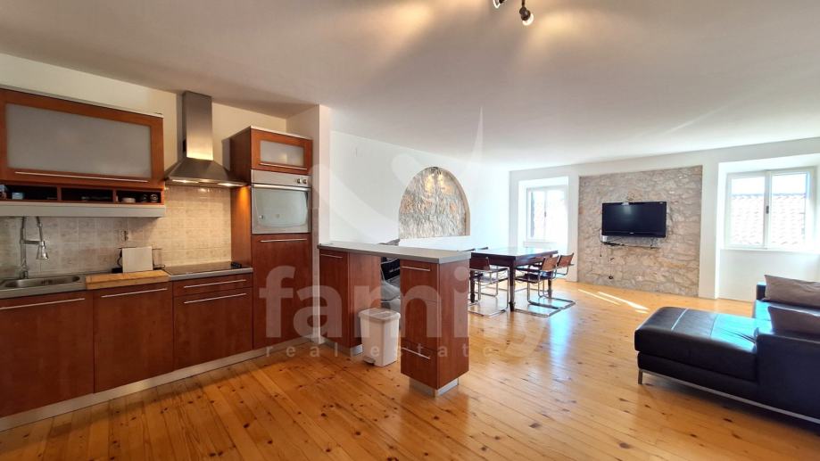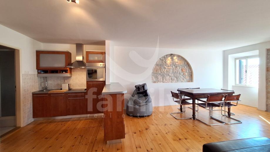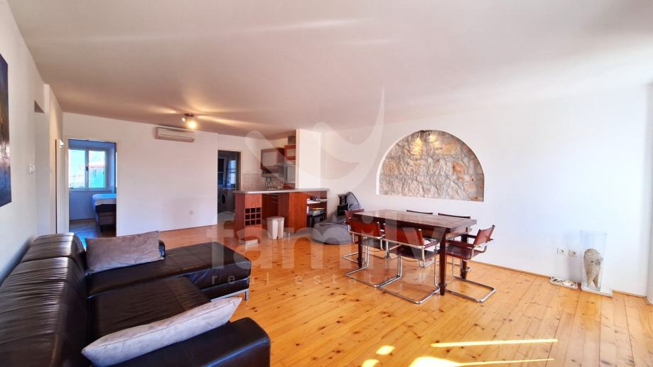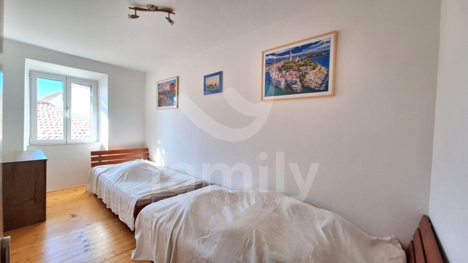 Upravo u samome centru Rovinja nalazi se ovaj prelijepi, prostrani stan površine 80 m2 na drugome katu manje stambene zgrade sa prostranom ostavom u okviru okućnice zgrade i verandom te okućnicom koja je na korištenje stanarima, što predstavlja rijetkost obzirom da se nekretnina nalazi u staroj jezgri. Stan se sastoji od ulaznog predprostora, dvije spavaće sobe sa ugradbenim ormarima, prostrane ostave, renovirane kupaonice sa dnevnim svijetlom opremljene kuhinje sa blagovaonom, prostranog dnevnog boravka u kojem su ostavljani detalji kamenih zidova što upotpunjuje ugođaj boravka u starom jezgru Rovinja. Sustav grijanja i hlađenja reguliran je putem vanjske i unutarnje jedinice klima uređaja, dok su podovi prekriveni drvenim oblogama i ravni, također stan je dosta osvijetljen obzirom da posjeduje dosta prozora. Nekretnina se nalazi na posljednjem katu manje zgrade te je iznad nje tavanski prostor sa kojeg se pruža pogled na more i stari grad. Lokacija nekretnine je idealna za sve ljubitelje stare jezgra Rovinja te je u blizini svih popratnih sadržaja, škole, vrtića, apoteke, trgovina, restorana itd.