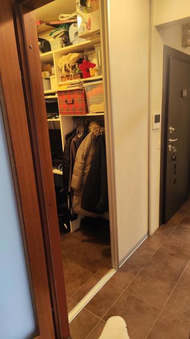 Između kuhinje i dnevnog boravka nema nosivih zidova, tako da novi vlasnik stana može vrlo lako promijeniti raspored, spojiti loggiu sa kuhinjom i dnevnim boravkom i dodati jednu sobu. Nova soba bi uzela jedan dio loggie i dnevnog boravka.