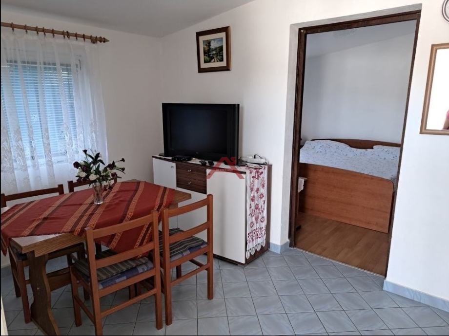 Prodaje se dvosobni apartman na otoku Viru (sjeverni dio otoka) u mirnoj i slijepoj ulici koja vodi do mora. Od plaže je udaljen oko 150 m. Okruženje je mirno, lijepo uređeno, a susjedi su pitomi. Apartman se nalazi na prvom katu zgrade koja ima ukupno 4 apartmana. Svaki apartman ima zaseban ulaz sa prekrasnim pogledom na more s jedne strane, a sa druge strane na zelenu prirodu. Zgrada je građena 2000-e god. a apartman je djelomično renoviran 2019-e god. Čine ga vanjsko stubište, terasa, dnevna soba i kuhinja, dvije spavaće sobe i kupaonica. Voda u apartmanu je iz zajedničke bušotine, odvod je septička jama, a struja ima interno brojilo. Moguće je zatražiti vlastiti priključak struje. Parkirno mjesto se nalazi preko puta kuće i dobije se uz apartman. Apartman je namješten te se takav i prodaje. Krov zgrade je betonska deka sa izolacijom od kamene vune i crijep. Vode iz bušotine ima na pretek i nikad nije bio problem s nedostatkom. Analizom je utvrđena kvaliteta vode. U ulici je postavljena ulična rasvjeta. Dokumentacija je uredna. Za dodatna pitanja nazovite na 0989137596 (wocap ili wiber).