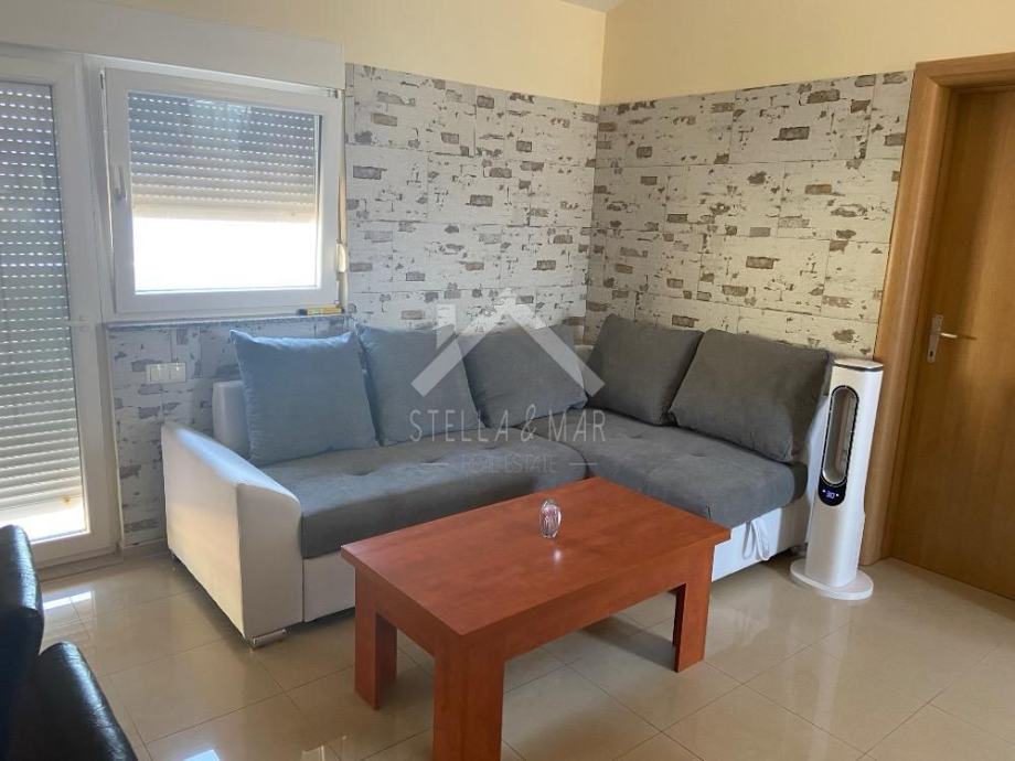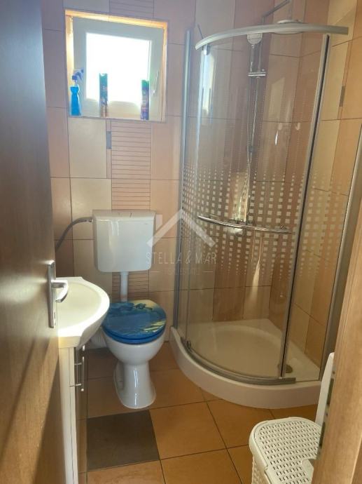 Apartman je površine cca 75m2 i raspolaže sa dnevnim boravkom, kuhinjom, dvije spavaće sobe, kupaonom i prostranom terasom sa koje se pruža predivan pogled na more. Udaljenost do mora je cca 150m.