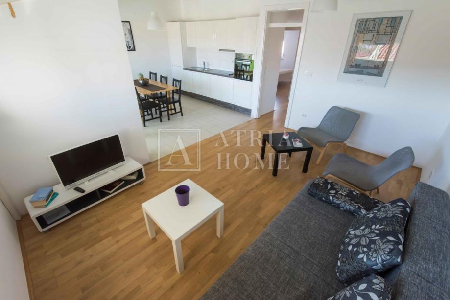 -Apartman se nalazi u stambenoj zgradi na drugom katu a sastoji se od hodnika, dvije spavaće sobe, kuhinje sa blagavaonicom i dnevnim boravkom, kupaonice, wc-a te terase s koje se pruža predivan pogled na more.