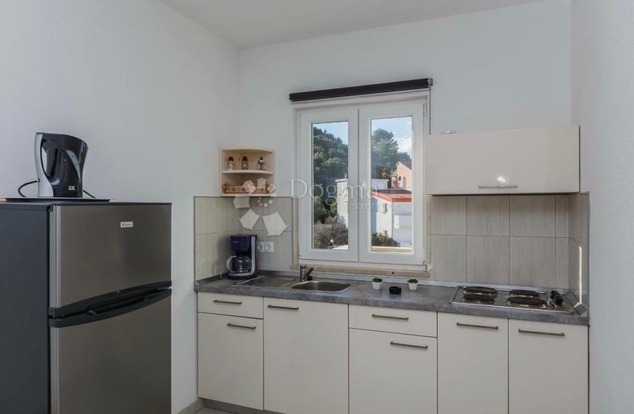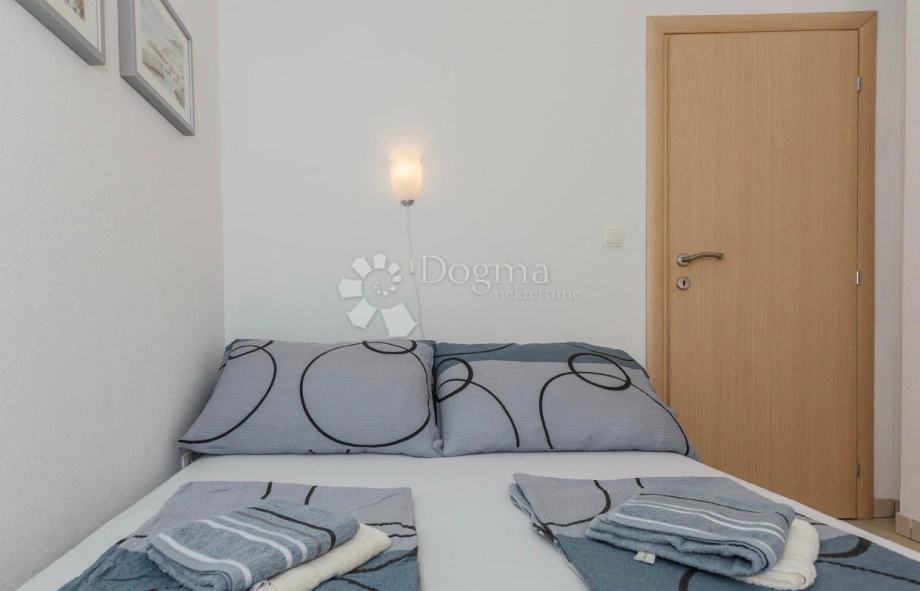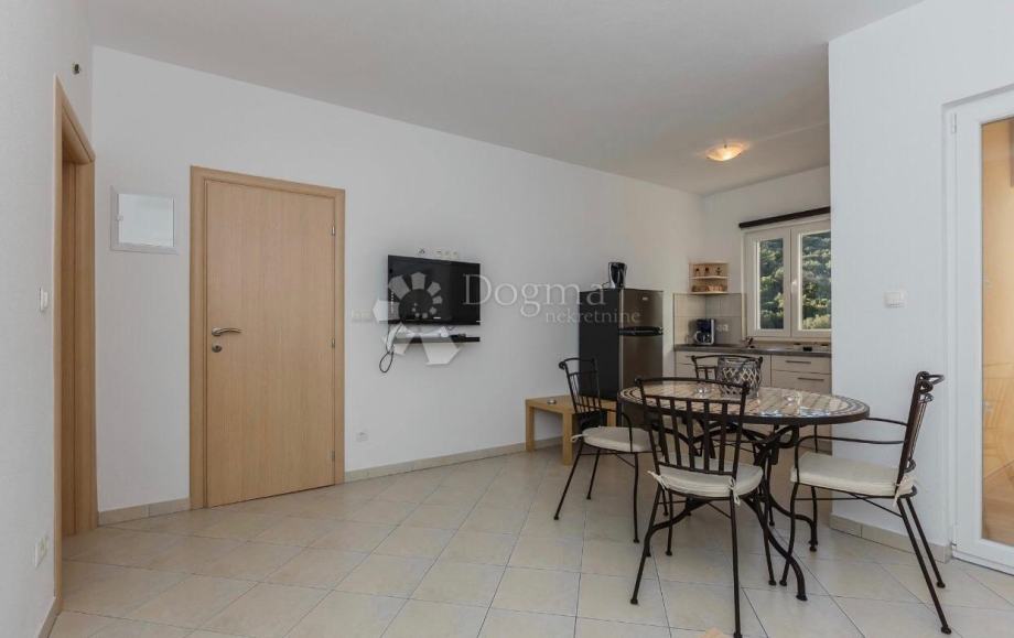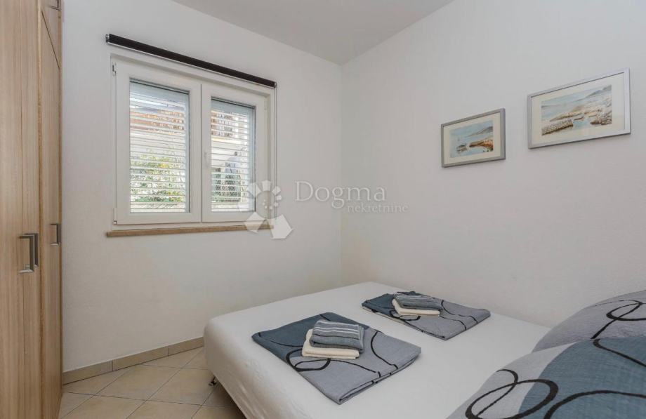 Zamislite jutra uz miris mora i panoramski pogled koji oduzima dah – upravo to nudi ovaj stan površine 52,99 m², smješten na prvom katu manje i vrlo privatne zgrade s ukupno tri stambene jedinice. Lokacija u mirnom naselju Mastrinka, na svega 250 metara od plaže, pruža savršen balans između opuštanja i blizine svih sadržaja.