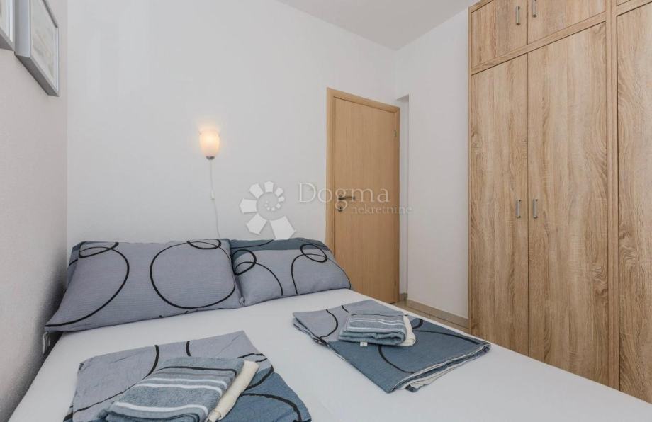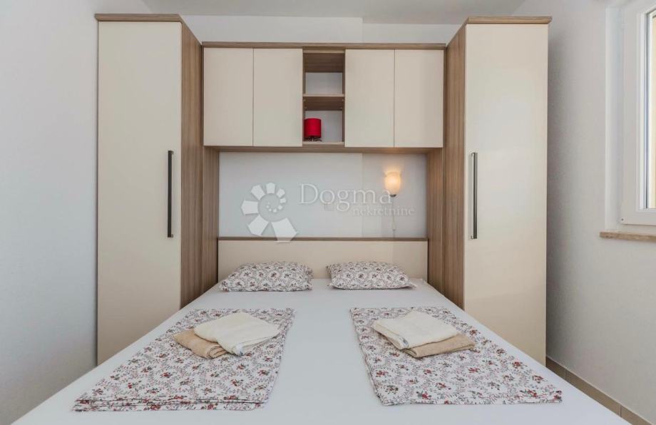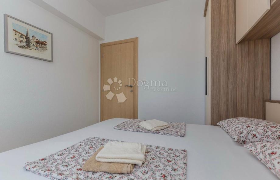 Unutrašnjost stana odiše prozračnošću zahvaljujući open-space dnevnom boravku s kuhinjom i blagovaonicom, idealnom za druženja i obiteljske trenutke. Tu su i dvije udobne spavaće sobe te prostrana lođa koja predstavlja pravu oazu – savršeno mjesto za jutarnju kavu ili romantične zalaske sunca uz more. Stanu pripada i vlastito parkirno mjesto, što dodatno doprinosi komforu.