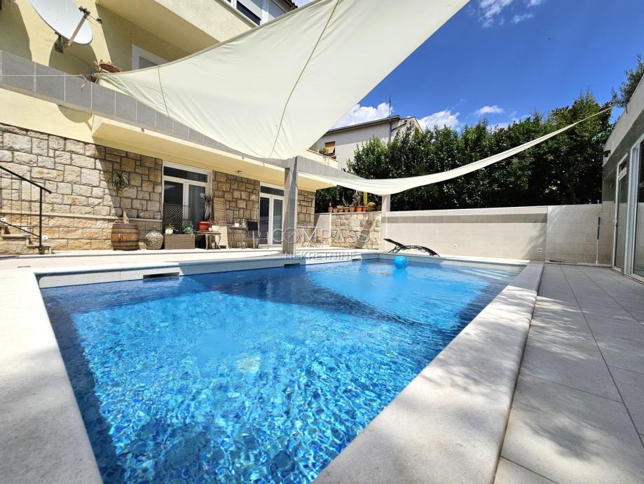 Wir bieten zur Vermietung eine elegante, vollständig renovierte Wohnung mit zwei Schlafzimmern in einem ruhigen Teil des Splitter Stadtteils Manuš an. Die Wohnung besteht aus zwei geräumigen Schlafzimmern, jeweils mit eigenem Bad, einer modern ausgestatteten Küche und einem gemütlichen Wohnzimmer. Voll klimatisiert bietet sie hohen Komfort und Funktionalität – ideal für die Langzeitmiete. Die künftigen Mieter können den Swimmingpool und den Außen-Loungebereich gemeinsam mit den Nachbarn im 1. Stock nutzen. Im Preis inbegriffen ist auch ein Außenstellplatz. Für weitere Informationen und zur Vereinbarung einer Besichtigung kontaktieren Sie +385 91 607 56 27 – Maja oder per E-Mail an maja@compass.hr