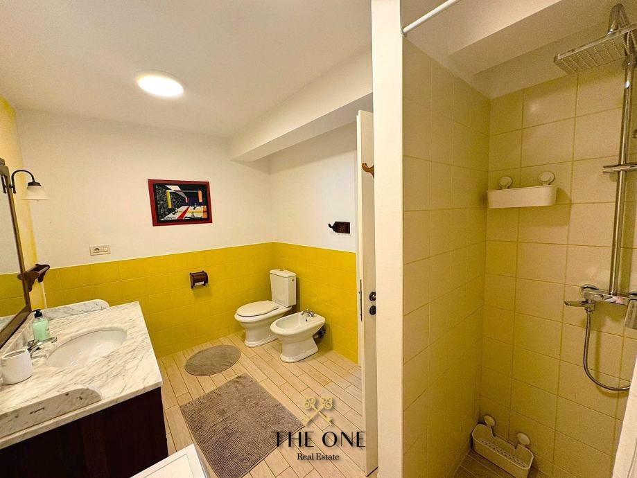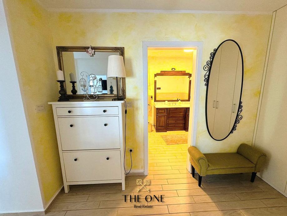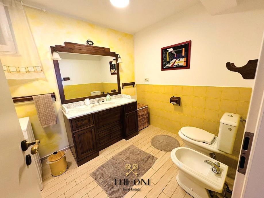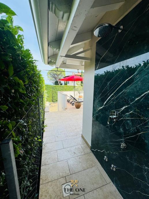 Posebna prednost ovog stana je ograđena terasa s bazenom i sunčalištem, idealna za uživanje u toplim ljetnim danima. Okućnica kuće nudi i dva privatna parkirna mjesta, što osigurava dodatnu praktičnost.