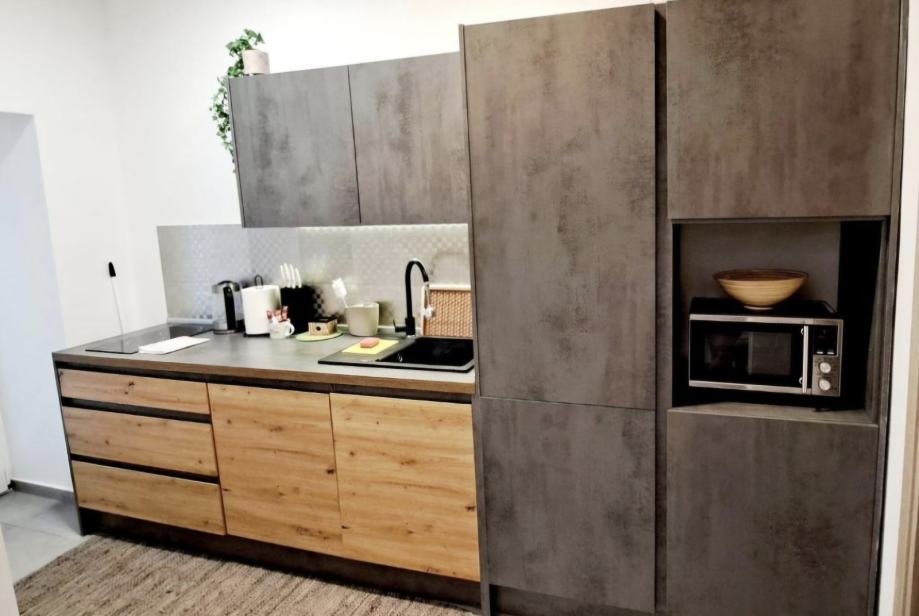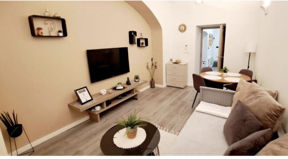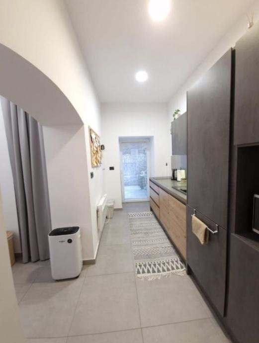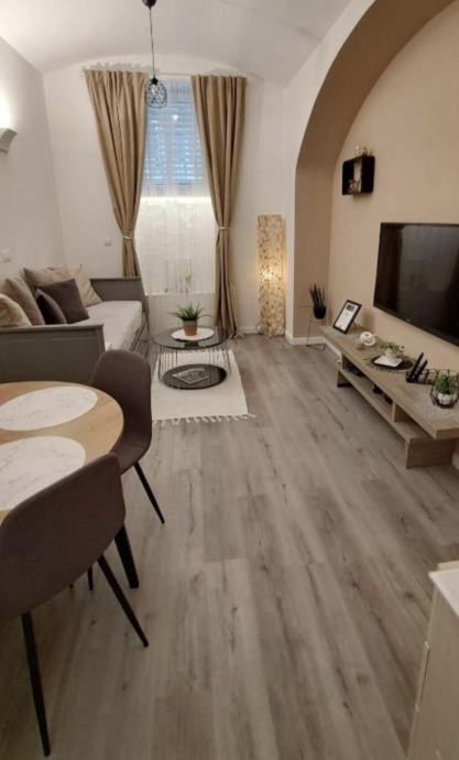 Stan je u potpunosti namješten, s visokim stropovima i dekorativnim polukružnim boltama koje prostoru daju posebnu atmosferu i osjećaj prostranosti. Zid koji dijeli dvije glavne prostorije izveden je kao montažna knauf pregrada te se jednostavno može ukloniti, čime se dobiva jedan veći otvoreni prostor. Stan je kompletno renoviran prije tri godine te je bez dodatnih ulaganja.