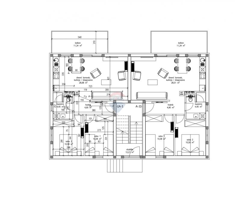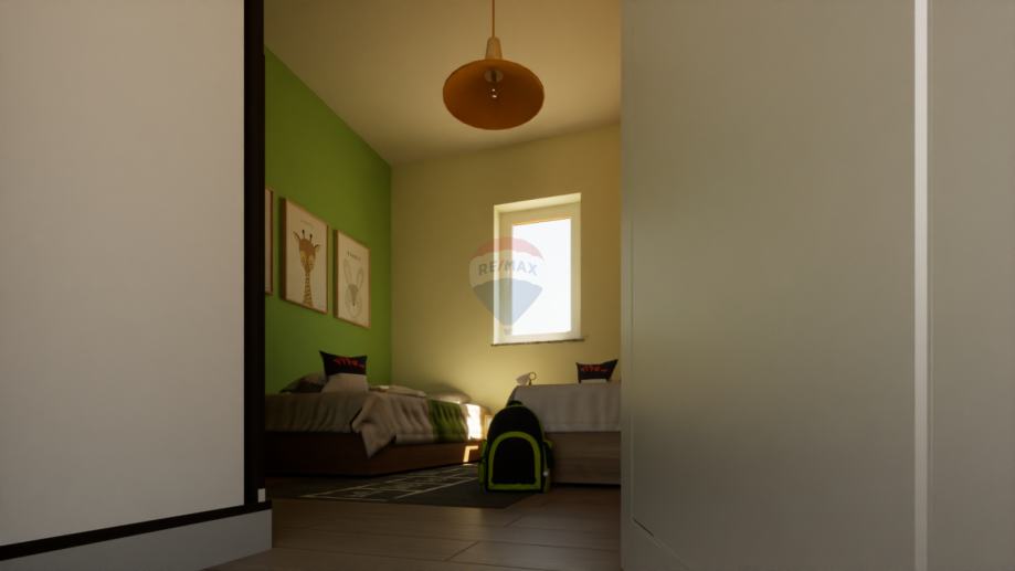Protupožarna i protuprovalna ulazna vrata, vanjska stolarija PVC GEALAN 9000 u bijeloj boji, AL - u rolete u antracit boji s električnim podizačima u dnevnom boravku i spavaćim sobama.