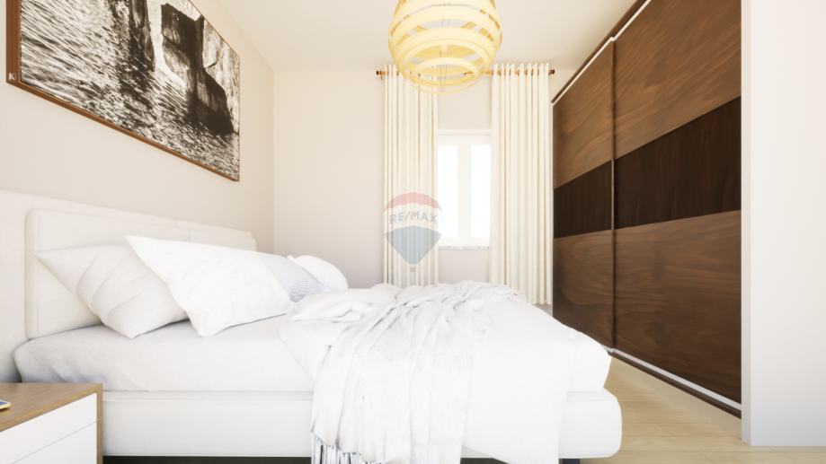 Stan se sastoji od hodnika, kuhinje i blagovaonice s dnevnim boravkom otvorenog tlocrta, 2 spavaće sobe i kupaonice, stambene je površine 59,06 m2, balkona 11,34 m2, a stanu pripada i vanjsko parkirno mjesto površine 12,50 m2.