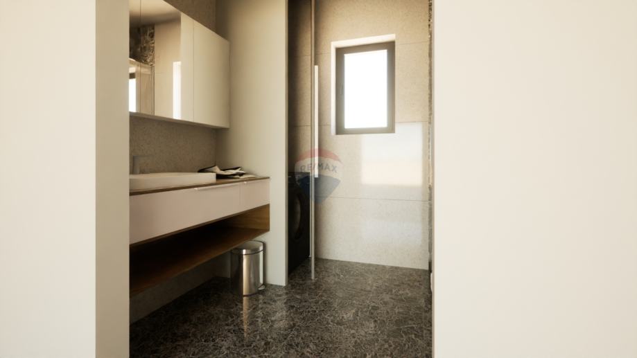 Opremljena kupaona tuš, podžbukna tuš baterija, wc školjka, umivaonik s bazom i bojler 80 l.