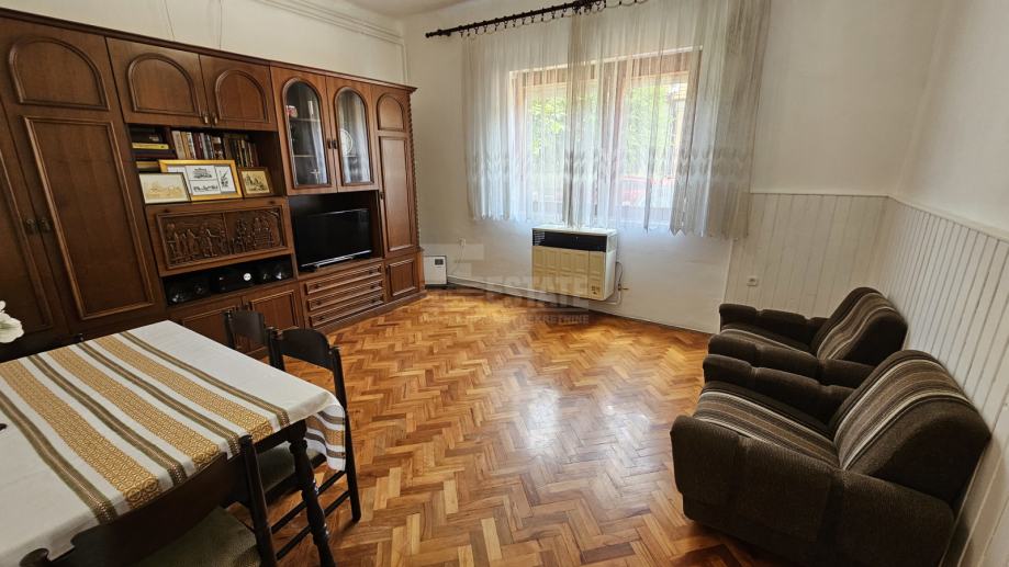 Građevina u kojoj se stan nalazi je bez vlage, obojane fasade, s dvorišne strane izvedena i termoizolacija. Krov u dobrom stanju - noviji, kao i krovna limarija. Vanjska stolarija je kombinacija drvenih prozora s izostaklima u korektnom stanju te novije PVC stolarije. Podne obloge soba od hrastovog paketa u prizemlju te laminata na katu- oboje u dobrom stanju. Stan je okrečen i riješen viška stvari i većine starog namještaja.