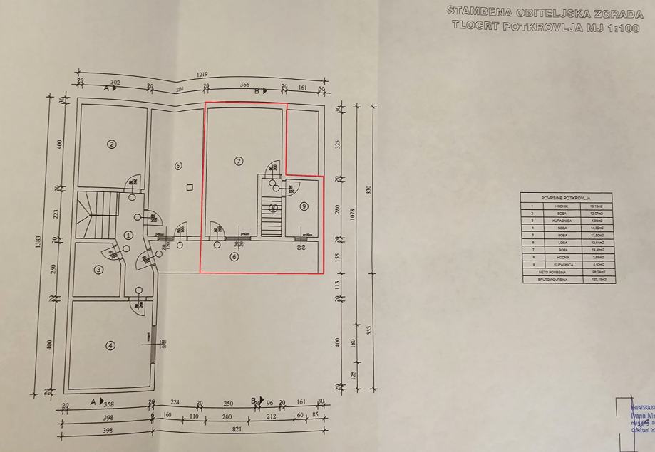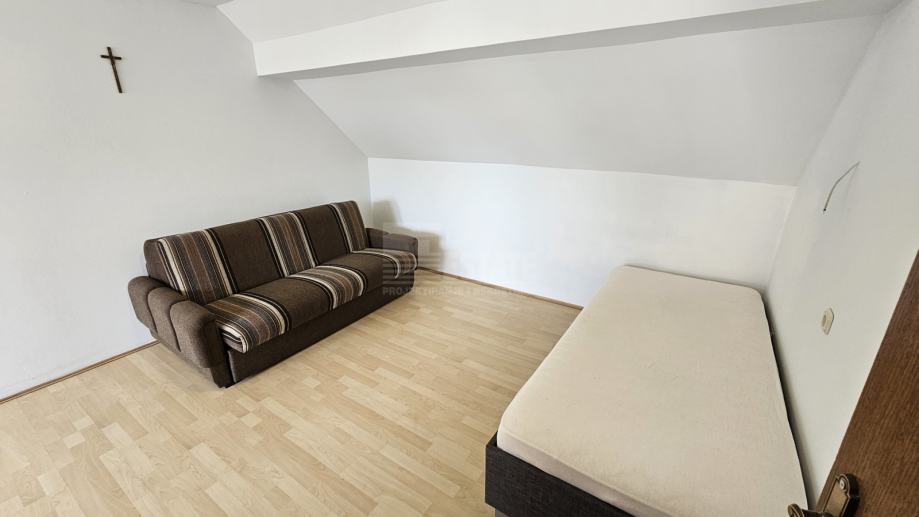 - druge etaže - potkrovlja, koji sadržava stubište, veću spavaću sobu, kupaonicu stambene površine 26,61 m2 te lođe od cca 9,50 m2.