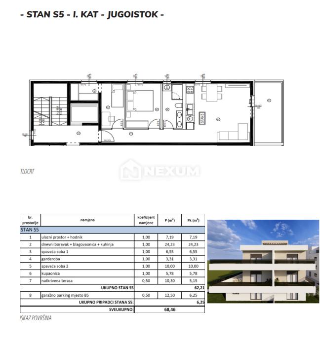 Dvosobni stan s natkrivenom terasom – 57,06 m² + terasa 10,30 m² | Kaš (prodaja)