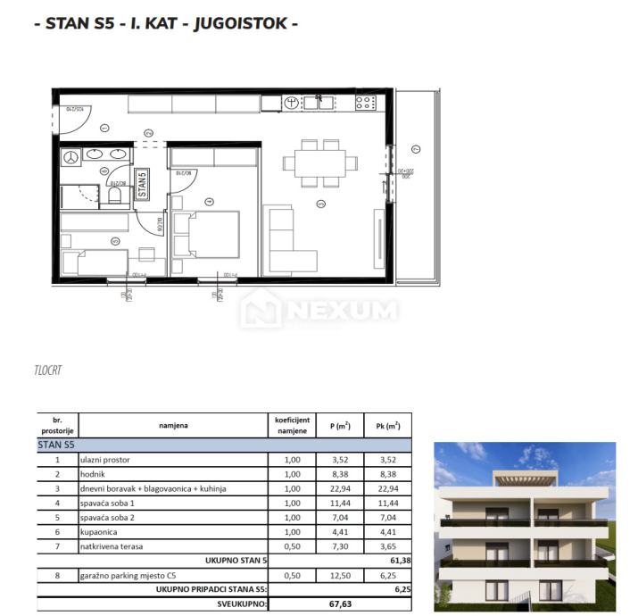 Stanu pripada parkirno mjesto, uz mogućnost nadoplate za garažno mjesto.