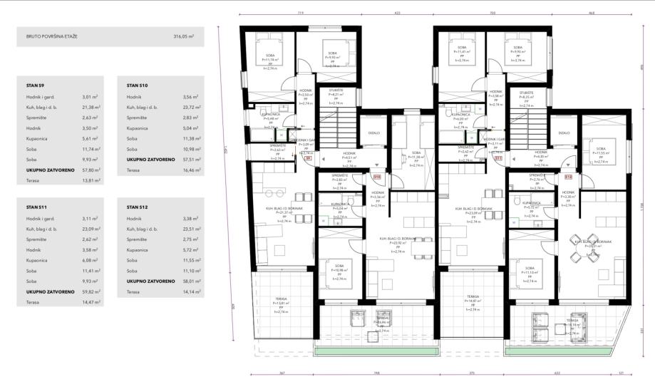 Stan S12 – 58,01 m² + terasa 14,14 m²