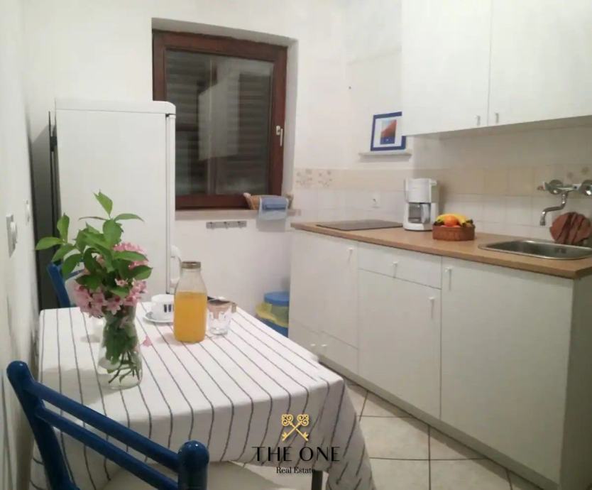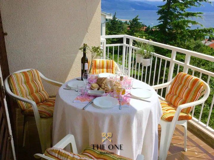 Dvosobni stan nalazi se u Novom Vinodolskom i smješten je na drugom katu obiteljske kuće. Sastoji se od prostranog ulaznog hodnika, kuhinje koja je povezana s dnevnim boravkom, te dvije udobne spavaće sobe. Dnevni boravak ima izlaz na natkriveni balkon s kojeg se pruža očaravajući panoramski pogled na more.