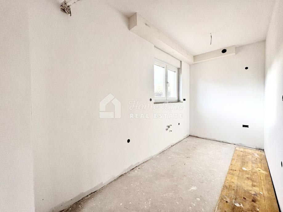 Nalazi se u prizemlju nove stambene zgrade s ukupno 4 stana. Sastoji se od kuhinje s blagovaonicom, dvije spavaće sobe, kupaonice, lođe ukupne površine 55 m2 i okućnice površine 30 m2 a pripada mu i parkirno mjesto u dvorištu zgrade.