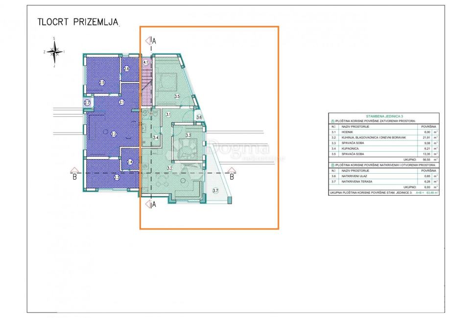 Stan se nalazi u prizemlju površine 69.12 m² , asastoji se od: