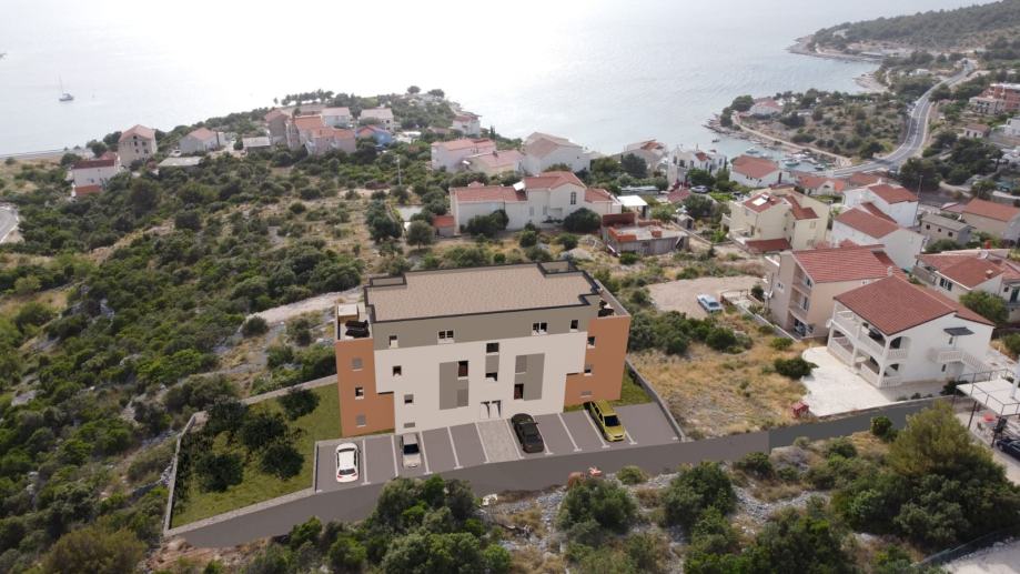 Zgrada se nalazi na oko 200 metara od mora, što omogućava lijep pogled na more. Budući stanari će moći uživati u mirnoj i blago povišenoj lokaciji.
