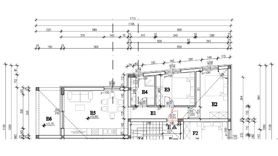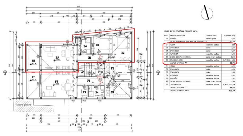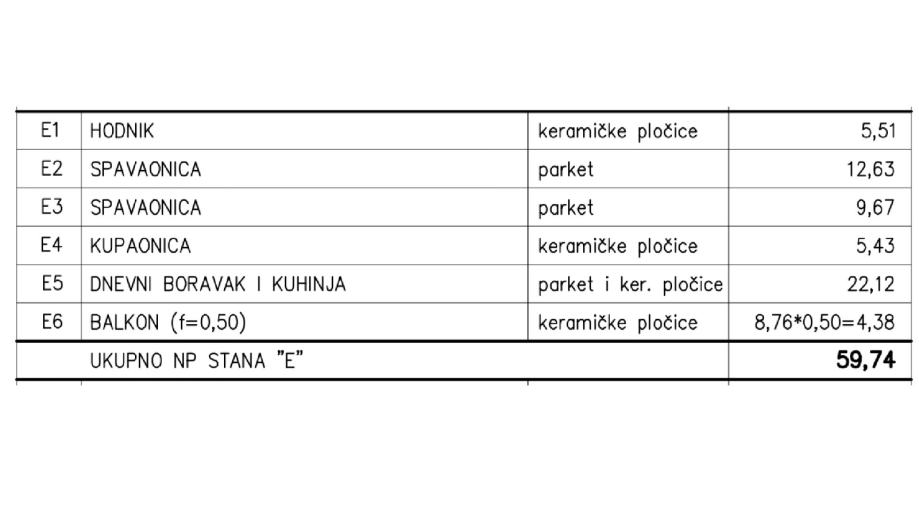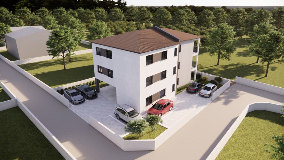 Fažana – Valbandon, dvosoban stan (E) u izgradnji, ukupne površine 62.74 m², smješten na drugom katu stambene zgrade sa šest stambenih jedinica.