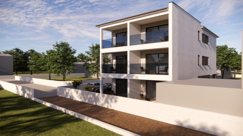 Fažana – Valbandon, dvosoban stan (D) u izgradnji, ukupne površine 68.83 m², smješten na prvom katu stambene zgrade sa šest stambenih jedinica.