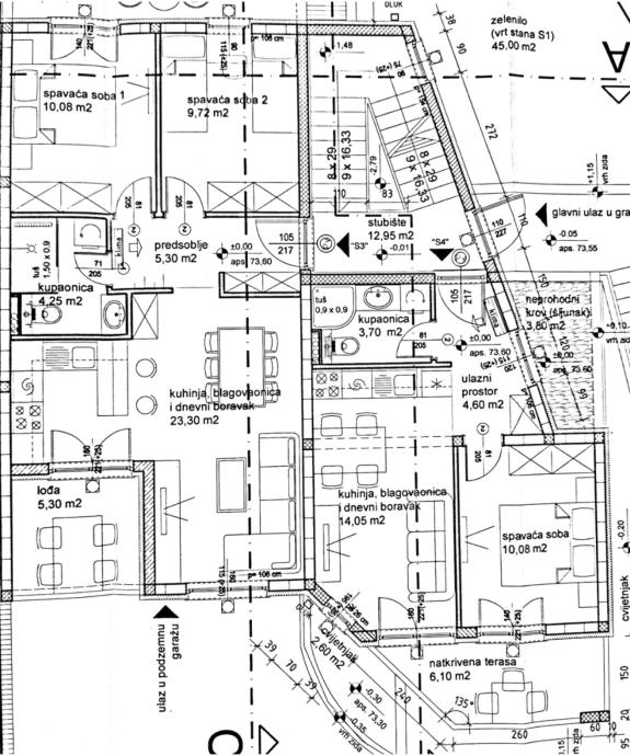 dvosobne stanove od 65m2 i vise,visoko prizemlje (na garazi visine 3m) s vrtovima i stanove na 1.kat