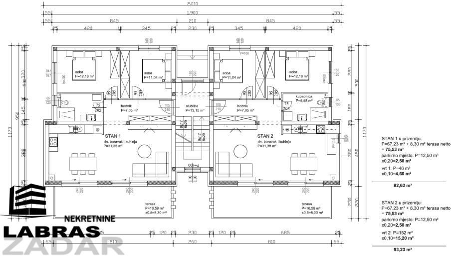 Stanu pripada i vanjsko parkirno mjesto te vrt bruto površine 46 m2