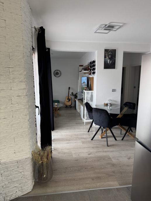 Stan se sastoji od kuhinje i blagavaonice, dnevnog boravka, hodnika, kupaonice i dvije sobe.
