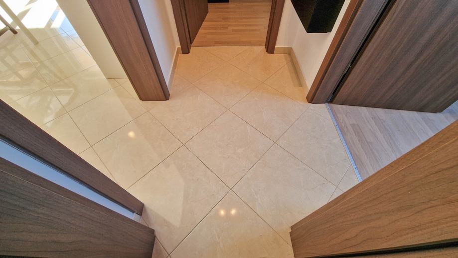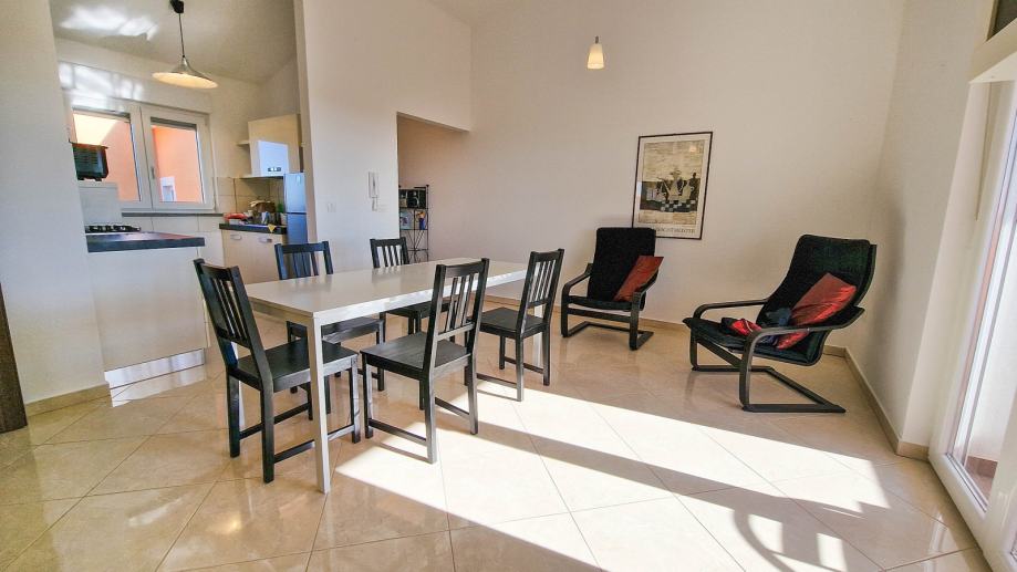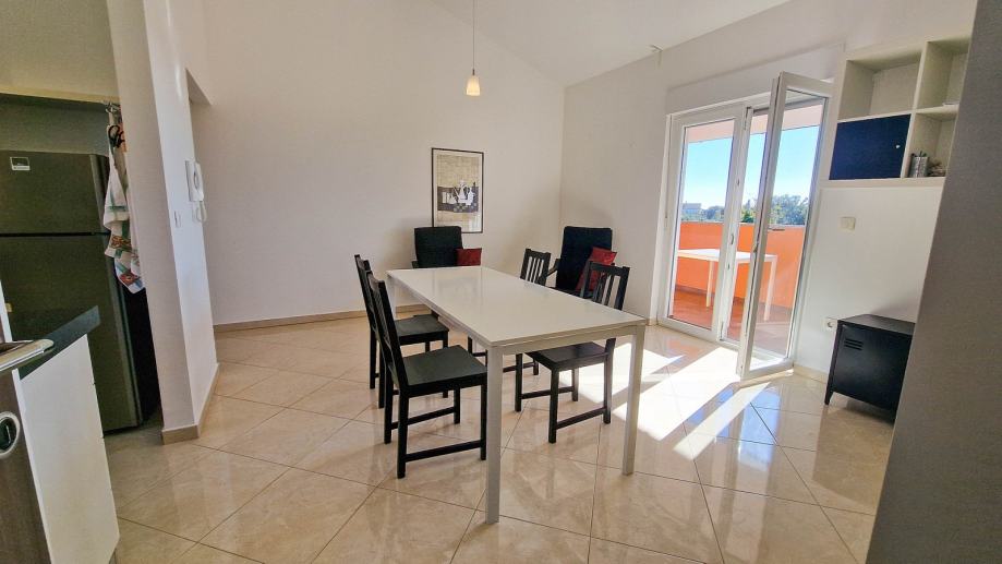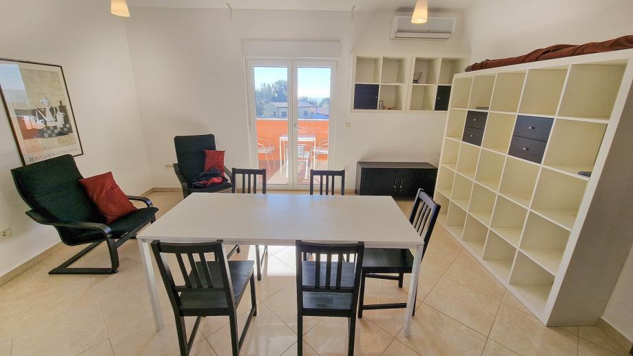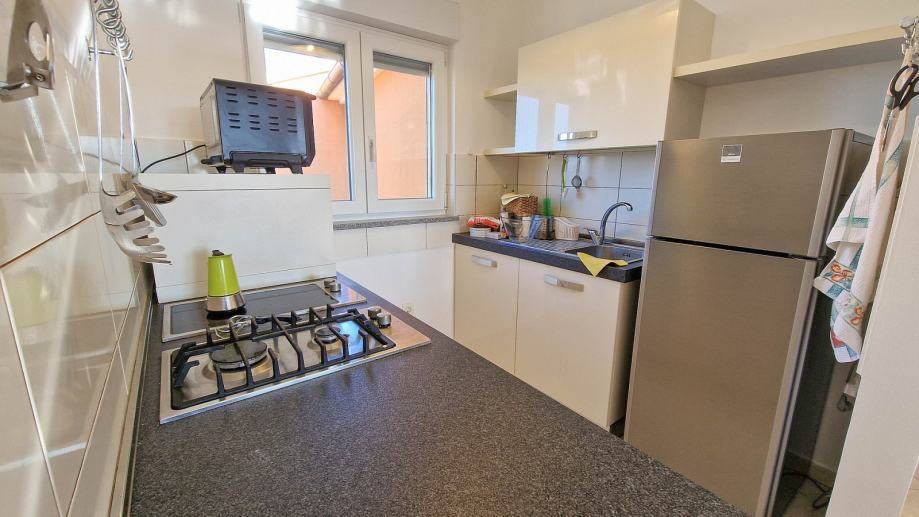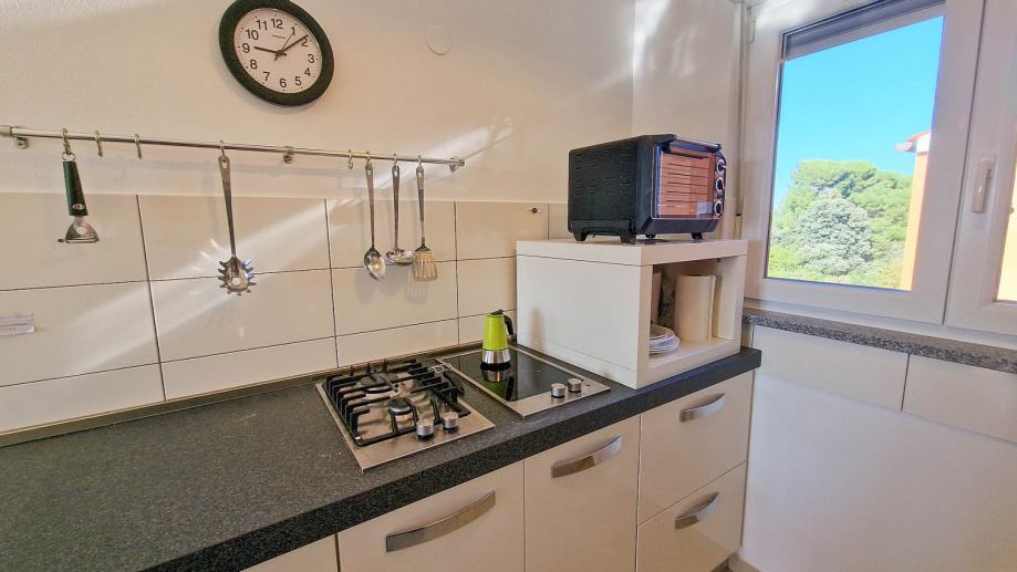 Stan se prodaje kompletno namješten, kao što je prikazano na fotografijama. Potrebno je samo kupiti kutnu garnituru u dnevnom boravku i postaviti umjesto te 2 stolice koje su vidljive na fotografijama.