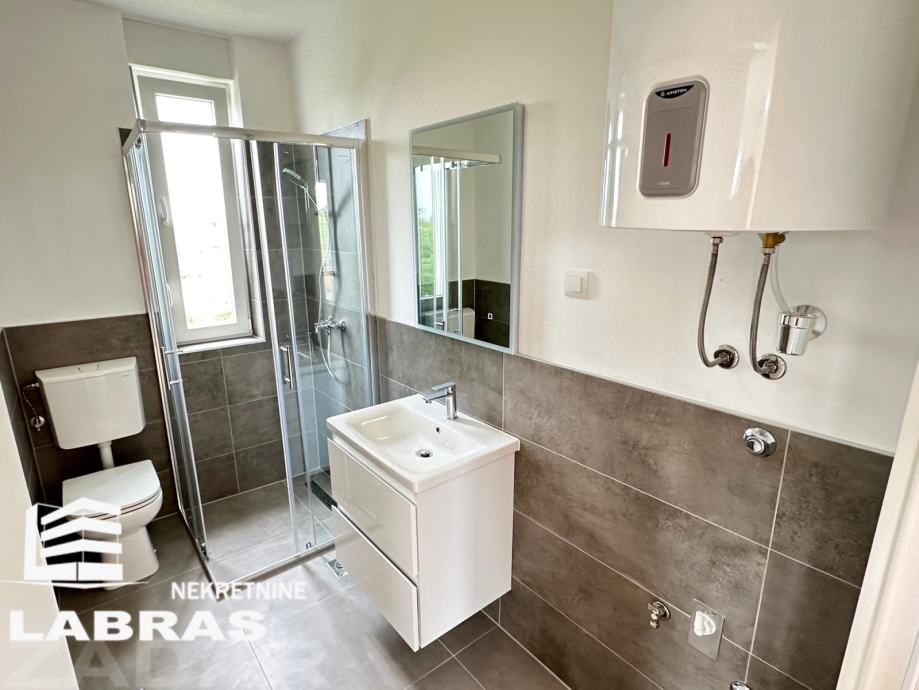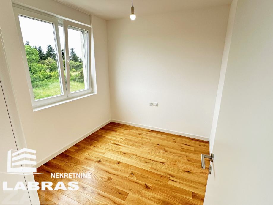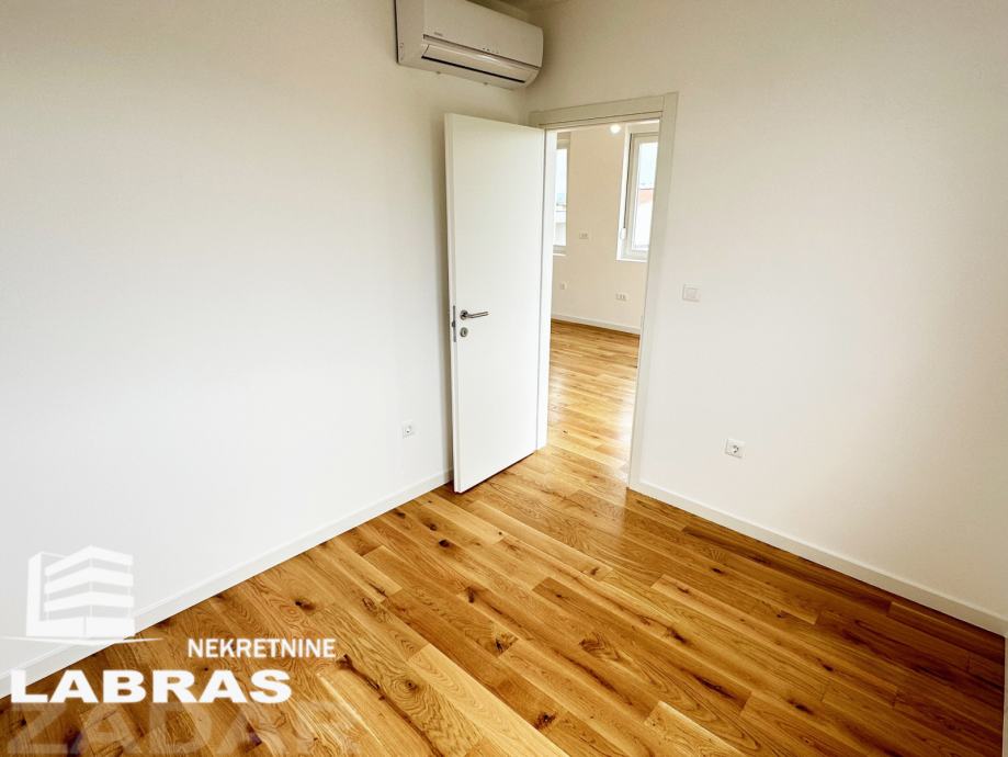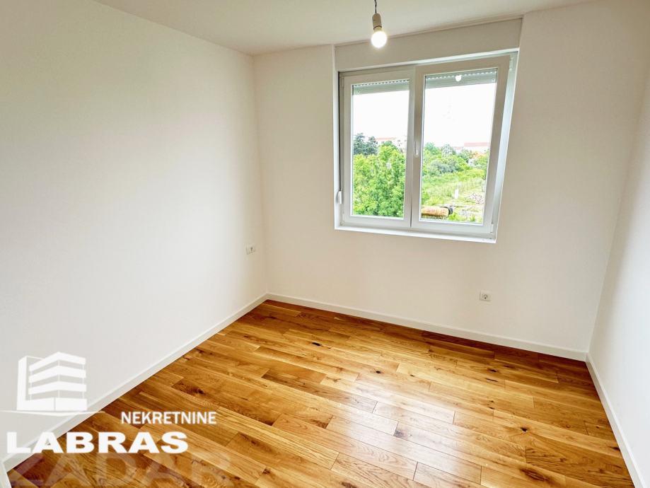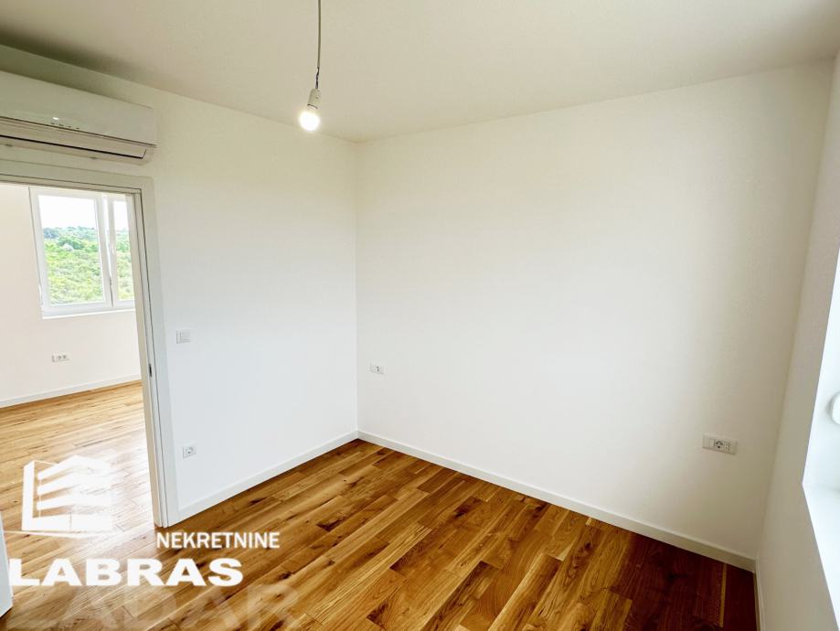 Dvosobni nenamješteni stan, nalazi se na drugom katu manje novoizgrađene (2023.) stambene zgrade na Bokanjcu, u mirnom predjelu.