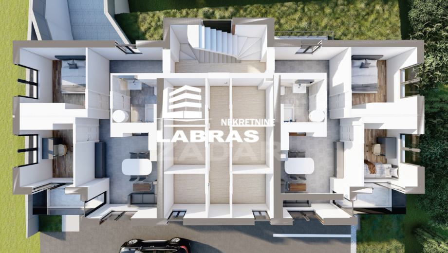 Stanu pripadaju još dva garažna parkirna mjesta i ostava na 1. katu.