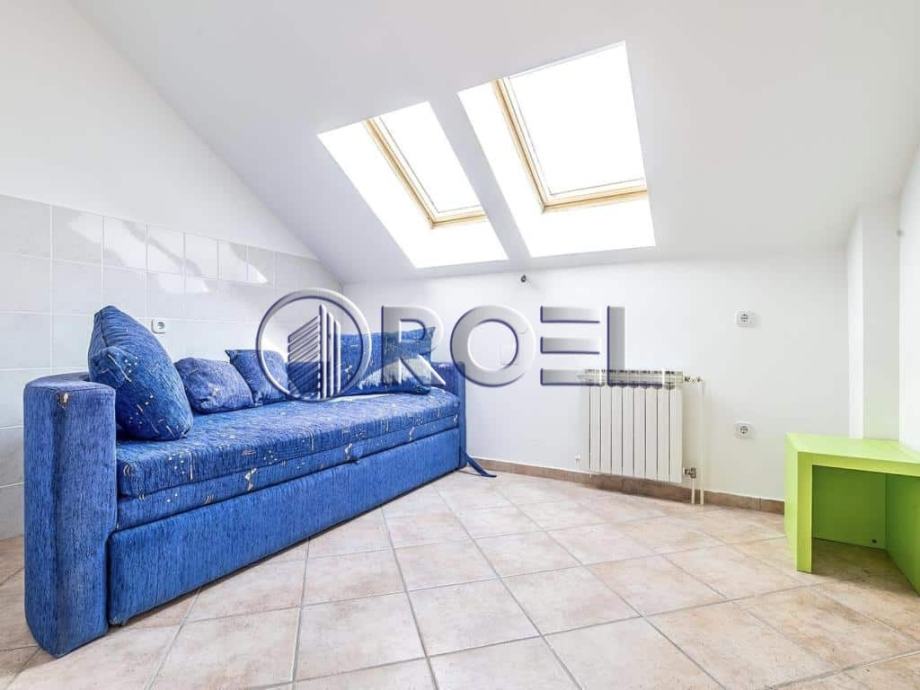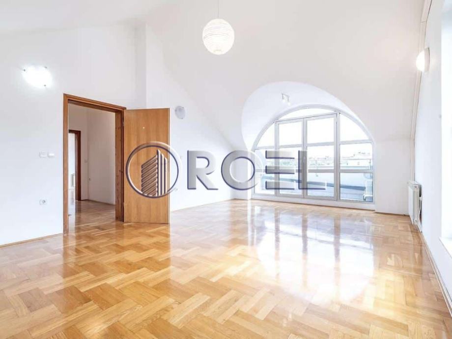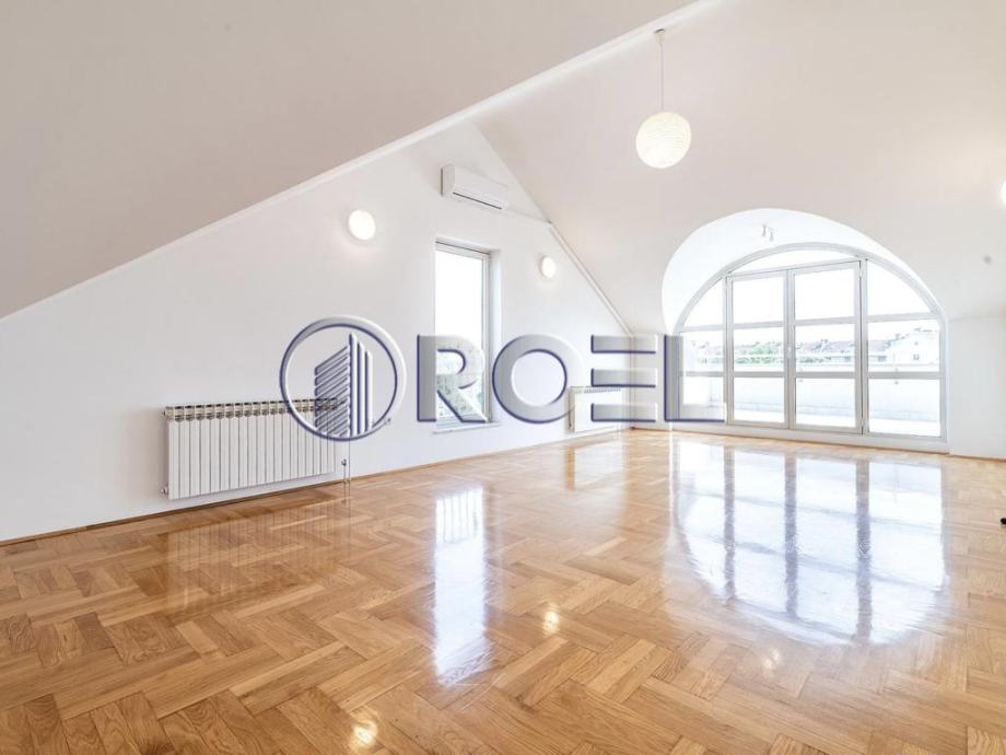 Dvosobni stan, NKP 110 m² smješten na trećem katu zgrade na Malešnici. Sastoji se od jedne spavaće sobe, dnevnog boravka, kuhinje, kupaonice s wc-om te dvije terase. Parkiranje je moguće u dvorištu pokraj zgrade za dva automobila.