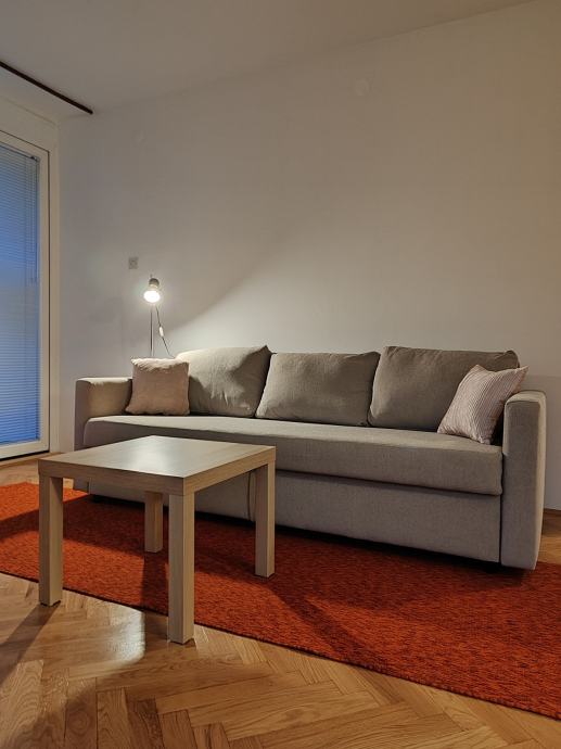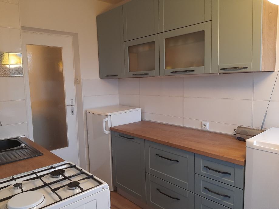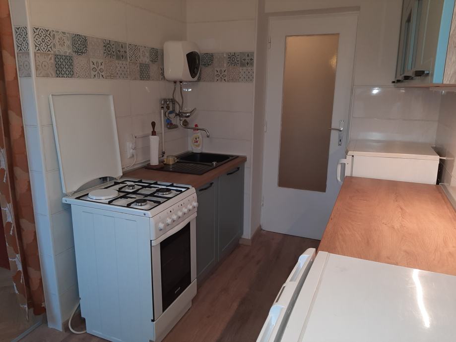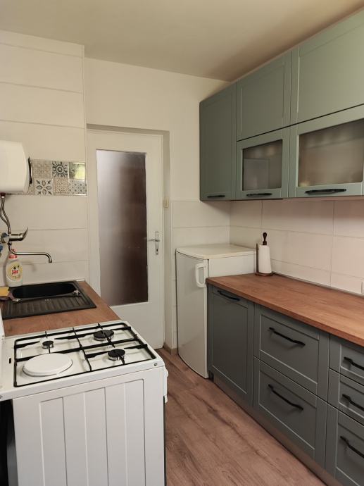 Iznajmljujem dvosobni stan, renoviran 2023. Kuhinja potpuno nova, opremljena. Velik dio namještaja nov. Perilica za suđe, vešmašina i frižider su novi. Stan ima klimu. Miran kvart, blizina stajališta tri linije autobusa, Konzum 100 m. Vlasnički list. Dostupan za najam od 01.01.2026.