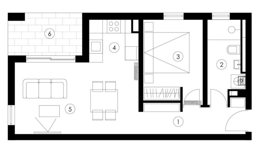 Zgrada 2, stan S2.8 nalazi se na drugom katu, a sastoji se od ulaznog dijela, spavaće sobe, kupaonice s WC-om, kuhinje s blagovaonicom i dnevnim boravkom te balkona.
