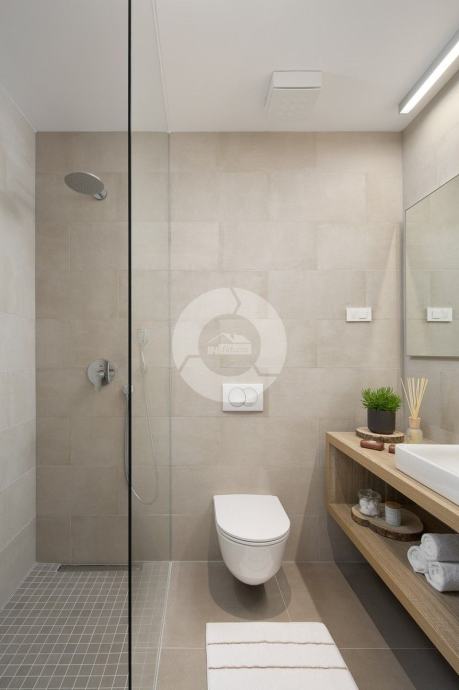 Interijer kuće otvorenog je tipa s puno prirodne svijetlosti. Ulaz se nalazi na katu objekta gdje su smještene 2 spavaće sobe s vlastitim kupaonicama.