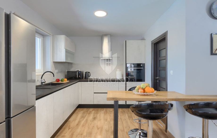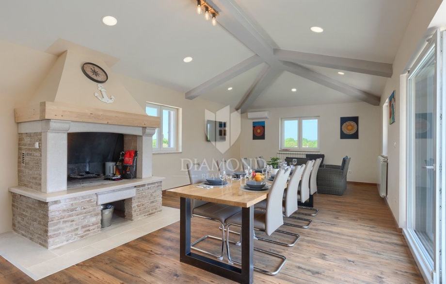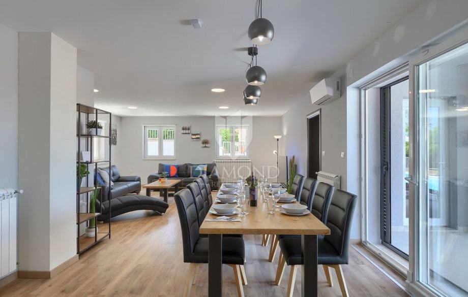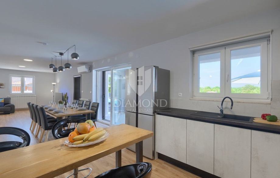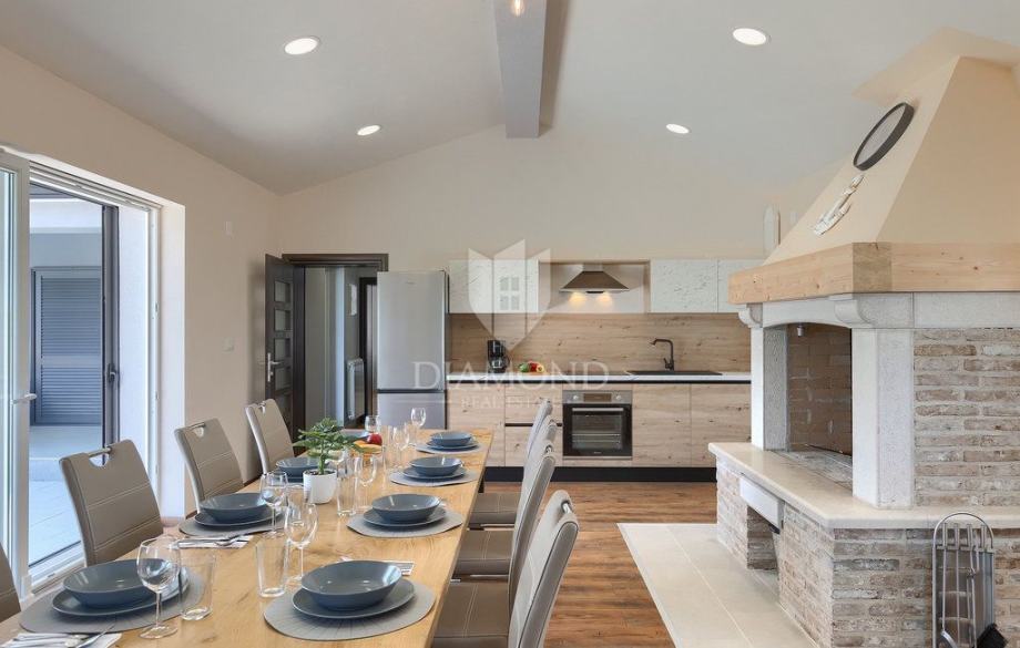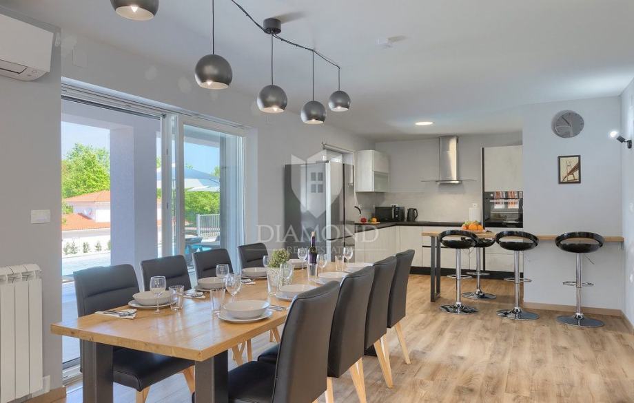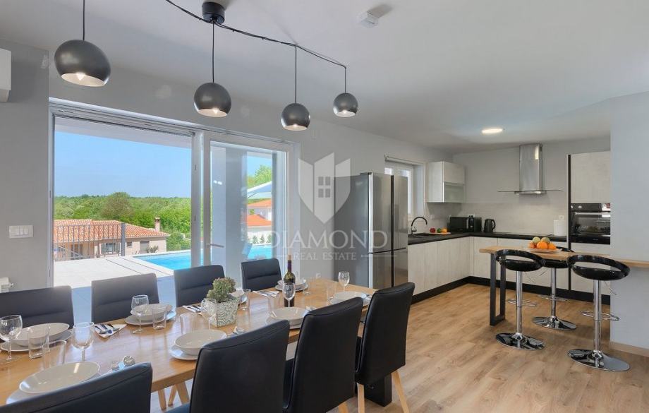 Sa dvije prostrane kuhinje, ova vila pruža savršeno rješenje za sve ljubitelje kuhanja i druženja. Glavna kuhinja je opremljena najnovijim uređajima i modernim detaljima, dok je druga kuhinja smještena kao konoba unutar same kuće, s izlazom na vanjski prostor pored bazena. To je idealno mjesto za opušteno kuhanje i blagovanje uz osvježavajući ambijent vanjskog prostora.