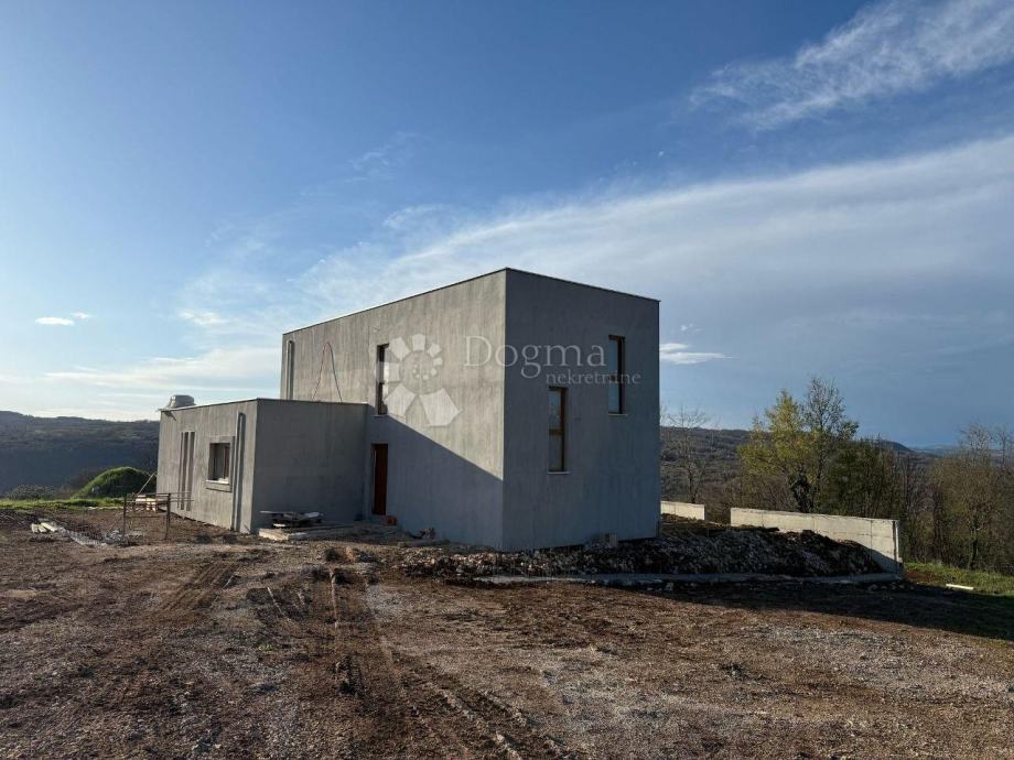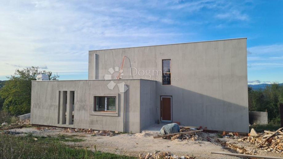 Predstavljamo Vam prekrasnu modernu kuću u izgradnji s prostranim eksterijerom. Ova kuća smještena na rubu mjesta pruža potpunu privatnost i mir, omogućujući Vam da uživate u udobnosti svoga doma u tišini. Kuća se proteže na dva nivoa, ukupne površine 150 m2, s nježno naglašenim modernim dizajnom koji se savršeno uklapa u prirodno okruženje.