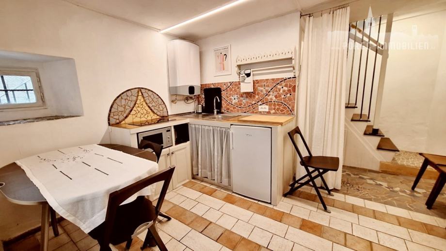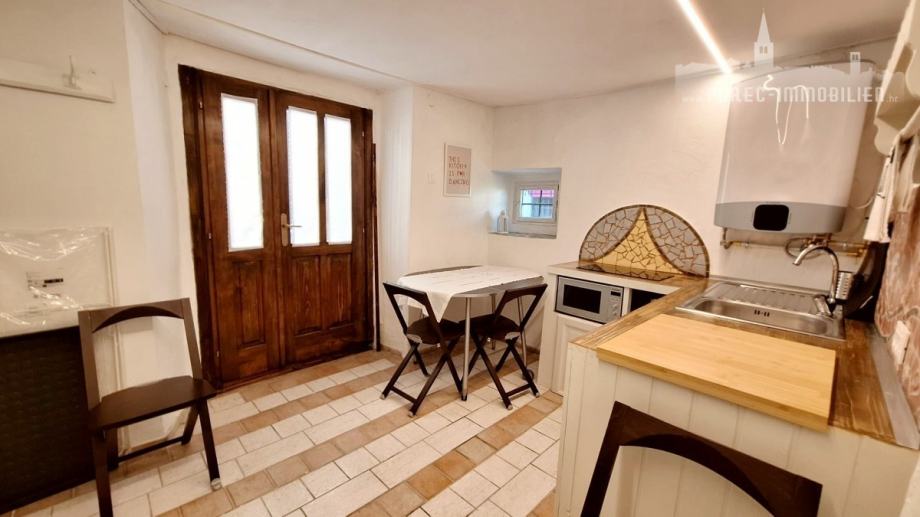 Prvi kat: dnevni boravak s izlazom na terasu koja pruža pogled na znamenitu Romaničku kuću, spomenik nulte kategorije.