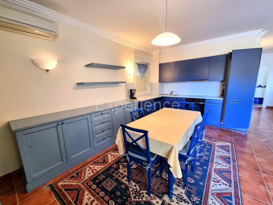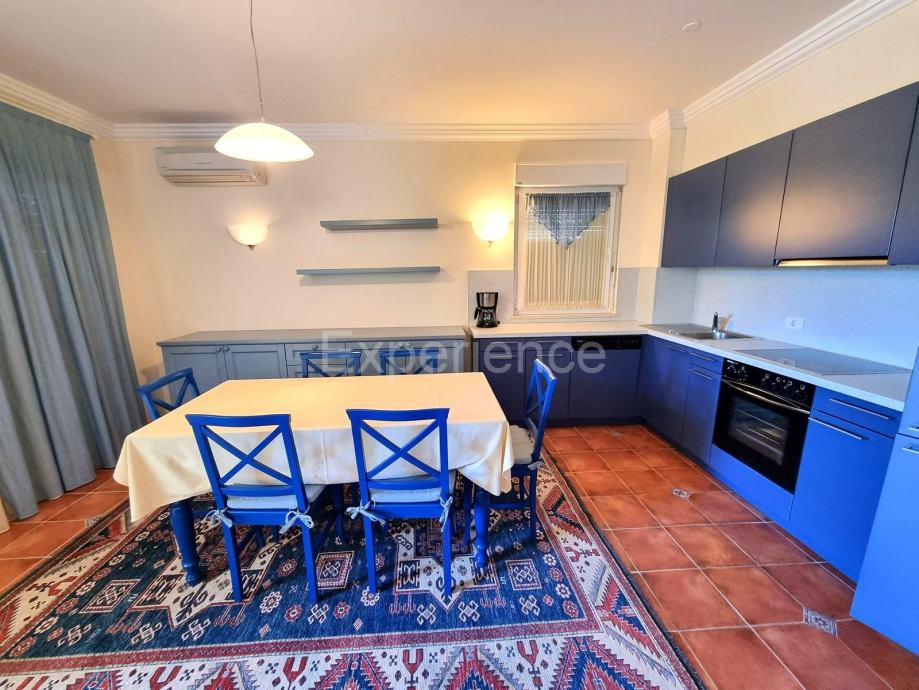 Crveni vrh, na ekskluzivnoj lokaciji, te na samo 130 m od uređene plaže na prodaji je komforan trosoban stan, ukupne površine 120.65 m². Stan se nalazi u sklopu resorta na lokaciji koja nudi prekrasan pogled na more. Zgrada je sagrađena 2005. godine i redovno održavana. Stan je smješten u visokom prizemlju zgrade sa liftom. Sadrži: predsoblje, otvoren i svijetao prostor u kojem su smješteni dnevni boravak, kuhinja i blagovaonica sa izlazom na prostranu natkrivenu terasu (20.89 m²), dvije spavaće sobe svaka sa vlastitom kupaonicom. Stanu također pripada spremište (7.23 m²) u suterenu zgrade.
