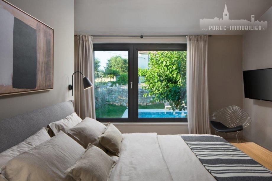 Vila je opremljena modernim i visokokvalitetnim namještajem i jedna je od najluksuznijih vila na porečkom području.
