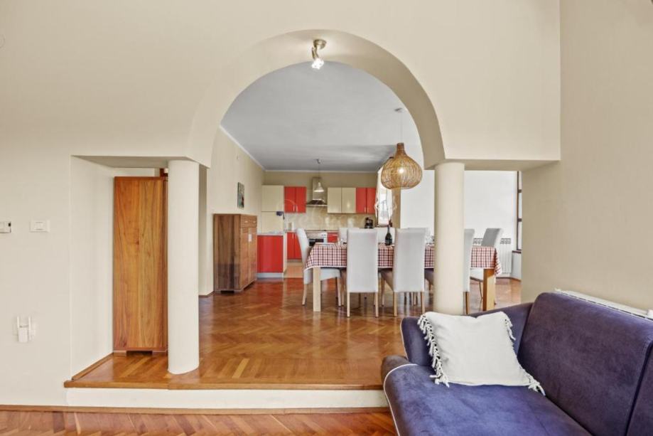 Na prodaju je samostojeća kuća ukupne neto površine 280 m2, smještena na mirnoj lokaciji u Peroju, svega 600 m od mora i uređene plaže sa šetalištem. Kuća pruža predivan pogled na more i otočje Brijuni te nudi udobnost i privatnost kroz tri etaže. Prizemlje ove prostrane kuće se sastoji od trosobnog stana, gdje svaka spavaća soba ima vlastiti izlaz na manju terasu, dnevni boravak otvorenog tipa povezan je s kuhinjom i blagavaonom sa izlazom na veliku natkrivenu terasu, dvije kupaone i funkcionalno predsoblje sa garderobom.Na prvi kat kuće se pristupa iz zasebnog predsoblja smještenog odmah na glavnom ulazu, što je vrlo praktirčno ako se koriste jedinice za turistički najam. Tu je smješten jednosoban stan sa kuhinjom i blagavaonom, kupaonom, predsobljem i dvije terase sa kojih se pruža otvoren pogled na more. U suterenu je konoba s kaminom koja ima ulaz iz kuće kao i direktno iz dvorišta. Pored kuće je zaseban apartman s terasom. Okućnica sa dva ulaza je uređena zelenilom i djelomično popločena s prostorom za dva vozila. Nekretnina je idealna za obiteljski život, odmor ili kao investicija za turistički najam.