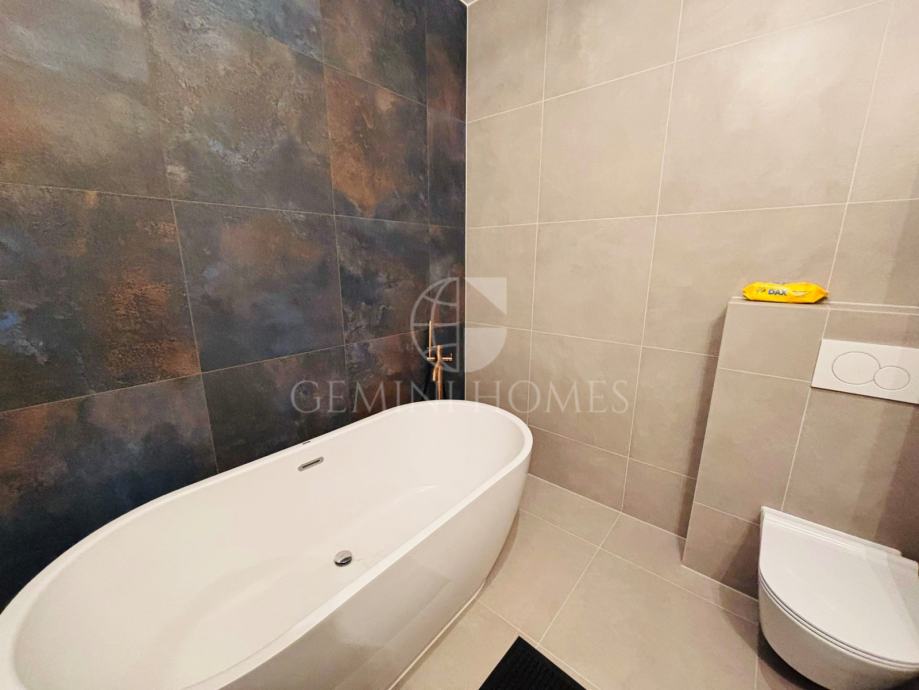 Umjesto standardne opreme, stan je opremljen pažljivo biranim materijalima i sanitarijama visoke klase: