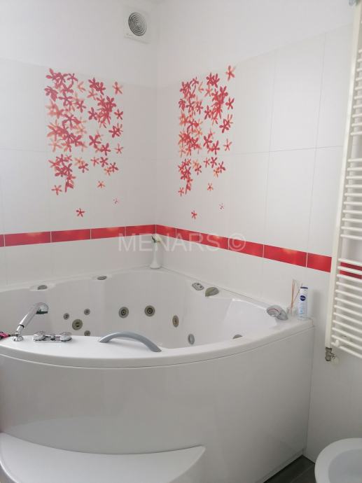 Vrhunski materijali i oprema! Protuprovalna vrata, unutarnja stolarija - vrata i štokovi od medijapana, ugradbeni klizni ormari, kompletno opremljena i namještena kuhinja po mjeri, hidromasažna kada...