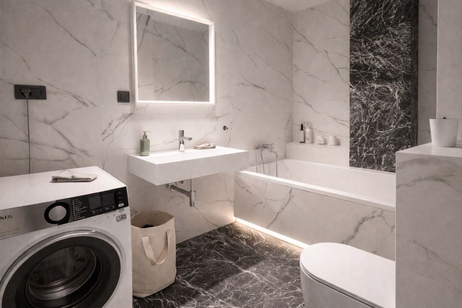 Na raspolaganju su dvije kupaonice – jedna s tuš kabinom, druga sa kadom, obje funkcionalno i kvalitetno izvedene.